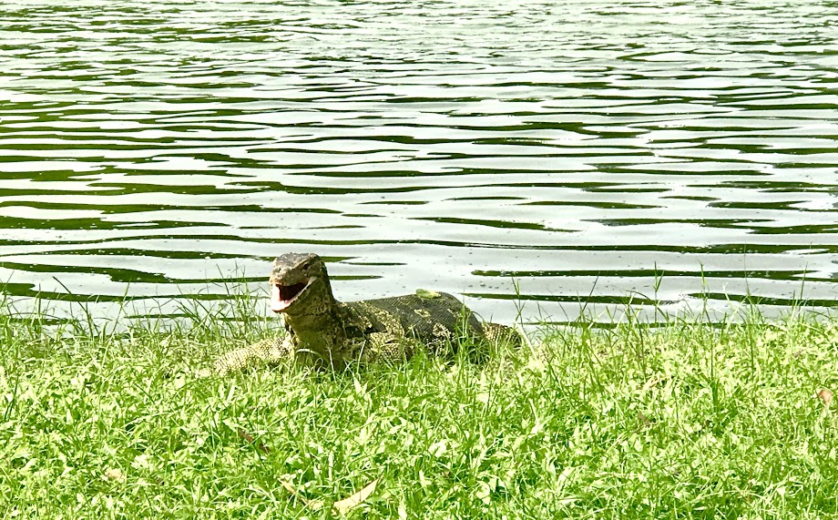 “It is known that if you happen to see a monitor lizard coming out of the lake, then it’s your lucky day.” I told Serene. Searched and searched we did, until finally as we approached the entrance again we saw one just peering out from the surface of the water.