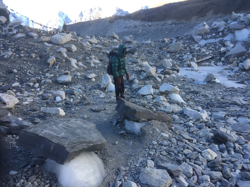 Meanwhile, at 6:15am, Fann set off with Sharan towards the new EBC.
