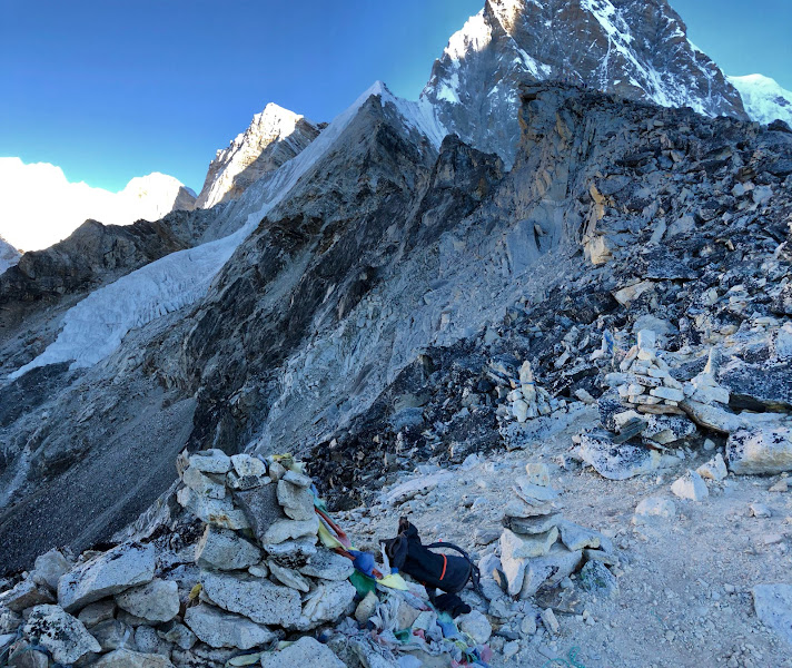 | Looking down towards the old Kala Patthar top. |