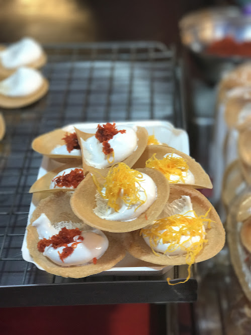 We had peng-kanged squid, some sweet pancake topped with cream, squid-omelette. The only street food I had so often wanted to try but even today still hadn’t was the salt-covered garlic-stuffed fish left crispily-cooked on the grills. Man, I am quite certain the next round in Bangkok I will sink my teeth into one of these.