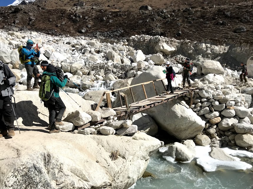 | Getting nearer to Lobuche. Walking through some icy ground. [Photo: Lay Khim] |