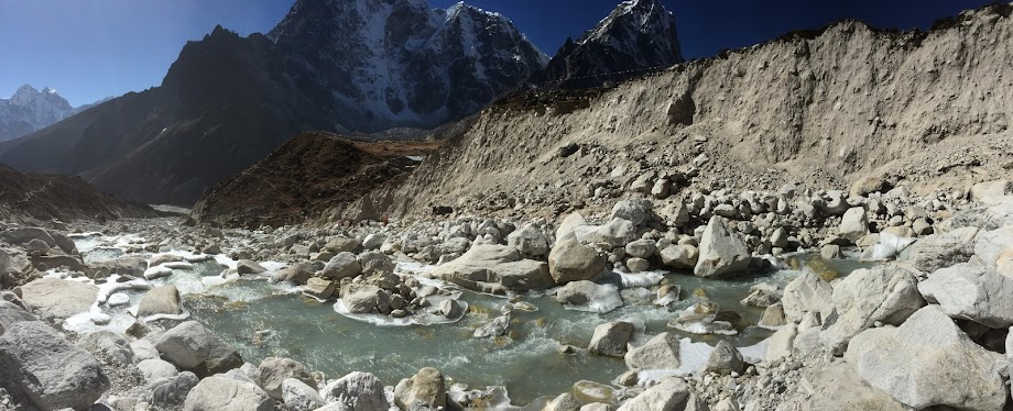 The flat plain right after the Gorak Shep guesthouse Himalayan Lodge was a temporary respite for the rocky climbs. We shared this plain with a herd of yaks on our way outwards.