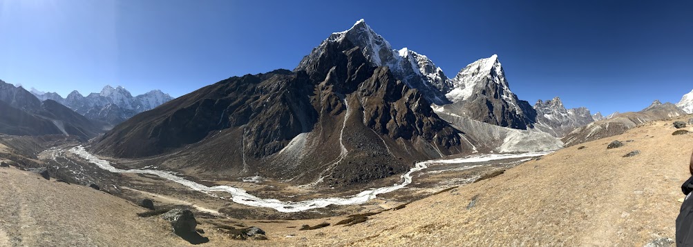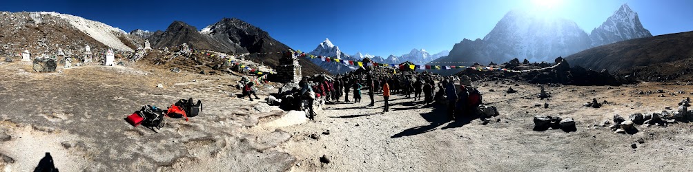 | Panorama by Alex - Pumori peak on the left with the black Kala Patthar just below it. |