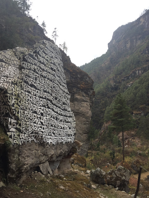 I particularly enjoyed this part of Monjo just next to Sagarmatha National Park station. The extensive prayer scriptures Om Mani Padme Hum carved on the rocks all over this part was the feature that told us- Monjo was near.